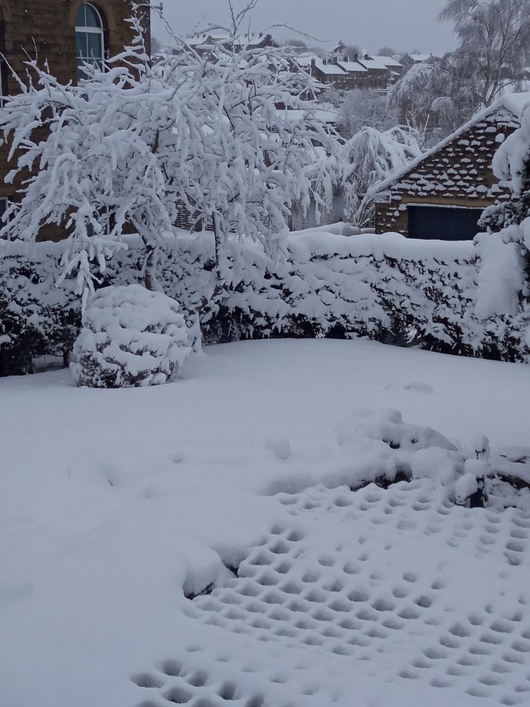It’s winter now and drops of frozen rain fall faintly